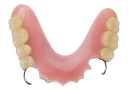 歯に固定するバネ(クラスプ)がない部分入れ歯です。薄く軽くつくれる弾性のある素材を使うので、歯ぐきにフィットしやすく、見た目も自然です。