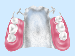 歯ぐきに当たる部分を生体用シリコンで覆った入れ歯です。フィット感があり衝撃を吸収します。外れにくく、歯ぐきと入れ歯の間に異物が入るのを防ぎます。